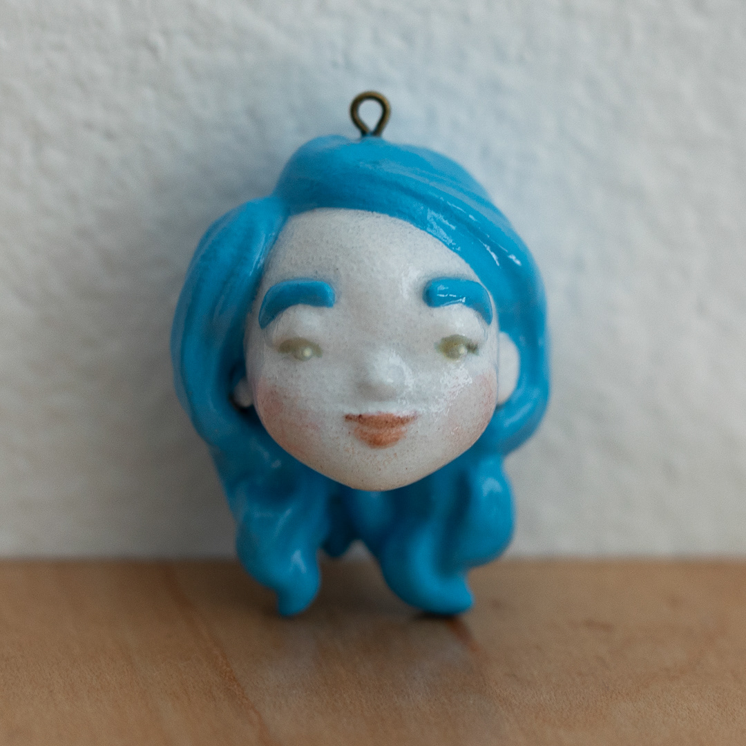 These ornaments are in fact not porcelain at all, but rather SLA resin painted and glazed to appear so. Their sizes vary, but they are each around 1.5” tall. Observant viewers of this site may recognize a few faces from my short film, “See You At Home.” Those heads were printed small and turned into Christmas ornaments for family members who lent their voices to my short film. The other heads, which fill out the rest of my faux-porcelain family, were designed and painted to cohere visually with the existing characters.